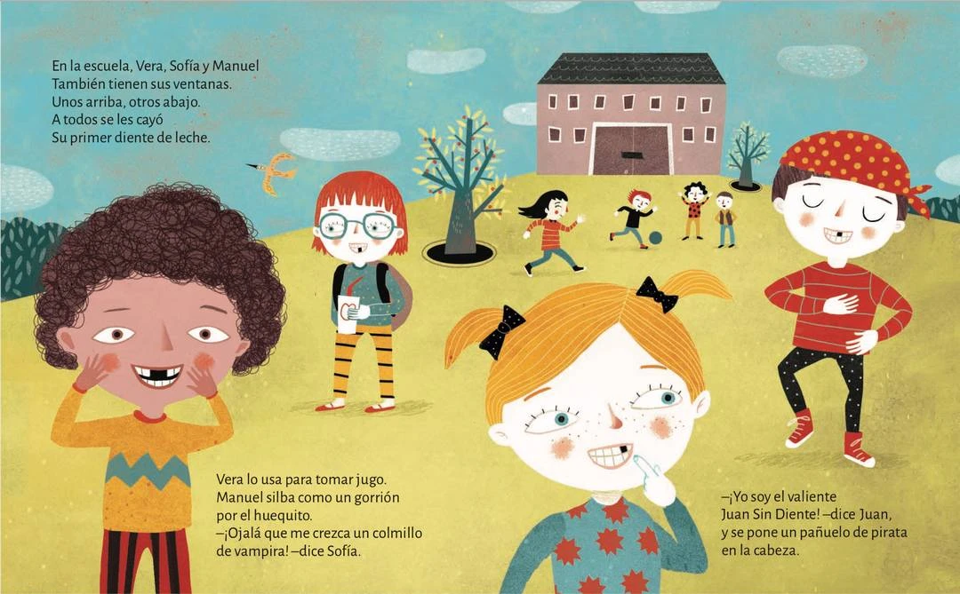 A Juan se le cayó su primer diente de leche y le quedó una ventanita en la boca, por allí sale a jugar y a explorar con sus amigos. Porque cualquier ventana, aún la más pequeña, ensancha los límites del mundo”. Un libro ideal para las primeras lecturas que los chicos hacen solos.