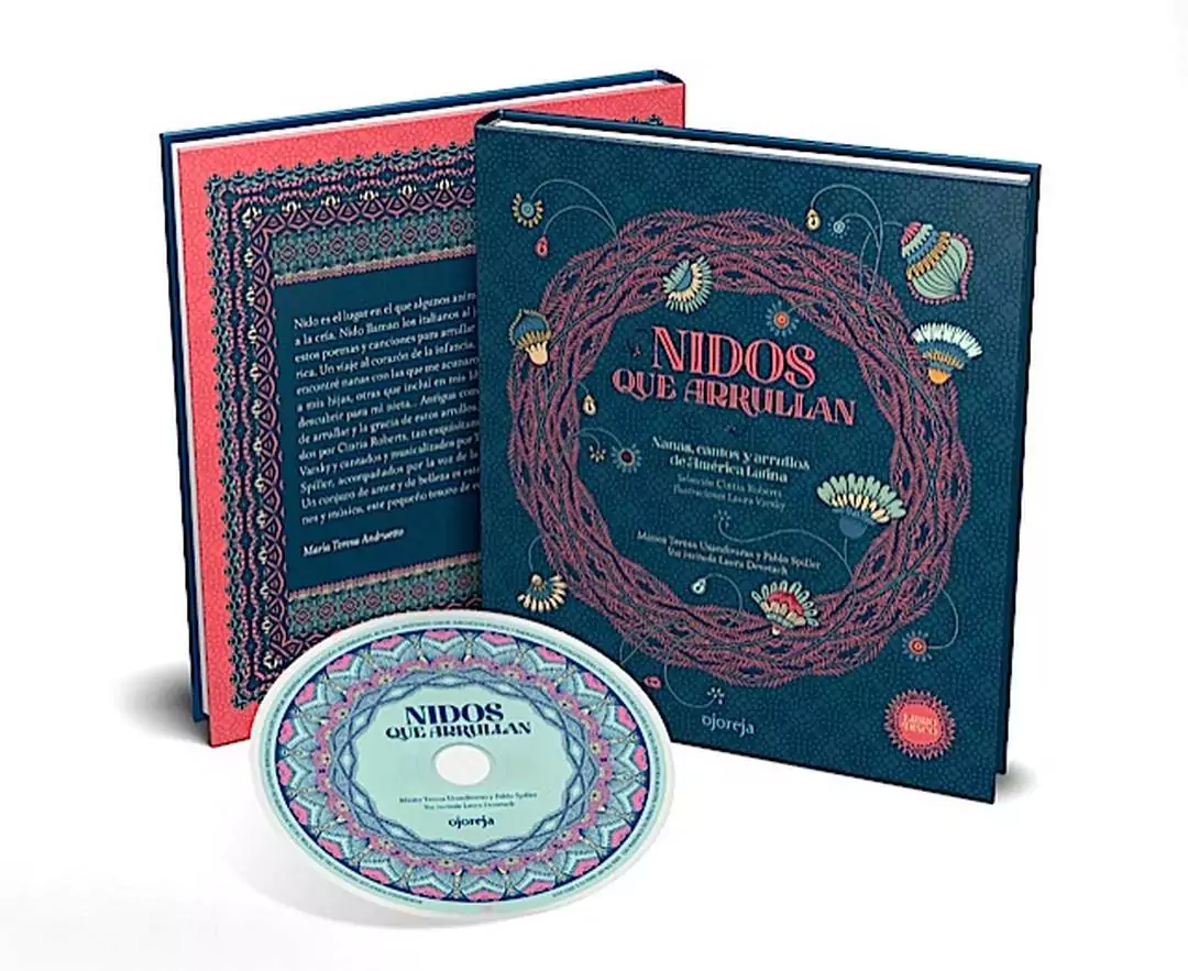 Si pensamos en la construcción de un nido, podemos imaginar el tiempo y cuidado que lleva. Crear un lugar cómodo y mullido para recibir a los pichones que están por nacer. Así de cálido y confortante es este libro-disco, construido con gran detalle y dedicación. La minuciosa selección nos lleva por diferentes regiones. Las letras, cantadas por Teresa Usandivaras y Pablo Spiller, se entremezclan con la cálida voz de la escritora Laura Devetach, que recita y nos convida algunos versos.